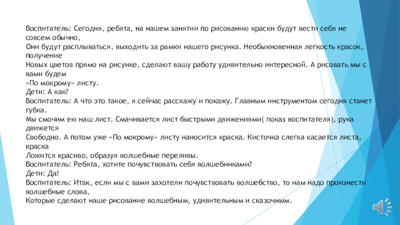 Слайд 8Воспитатель: Сегодня, ребята, на нашем занятии по рисованию краски будут вести