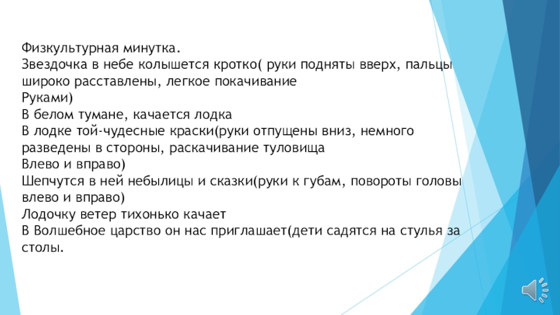 Слайд 11Воспитатель: А сейчас я прочитаю отрывок из сказки, а вы её