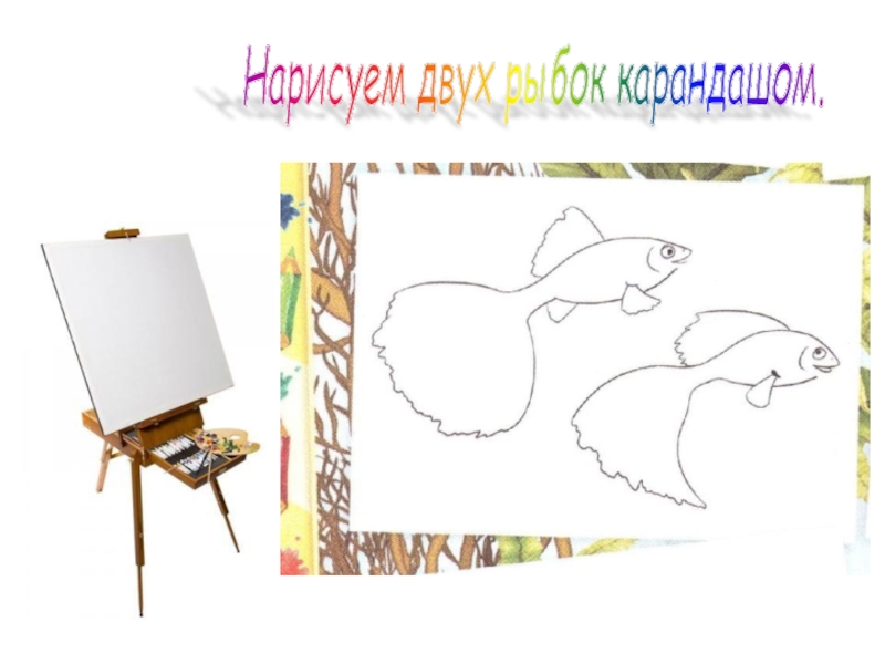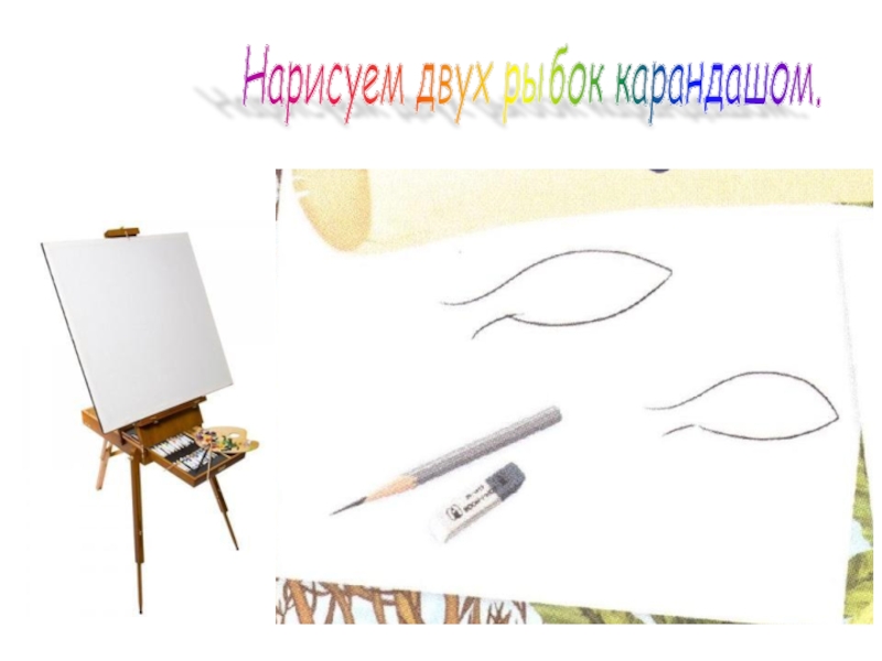 Слайд 7Нарисуем двух рыбок карандашом.
