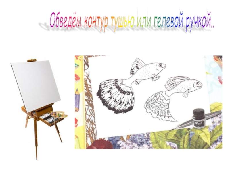 Слайд 8Обведём контур тушью или гелевой ручкой..
