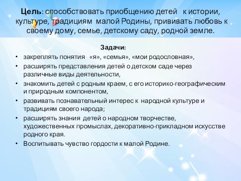 расширять знания детей о народном творчестве, художественных промыслах, декоративно-прикладном искусстве родного края.