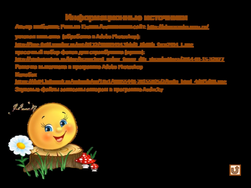 Информационные источникиАвтор шаблона: Ранько Елена Алексеевна сайт: http://elenaranko.ucoz.ru/  угловая виньетка (обработка в Adobe Photoshop):http://img-fotki.yandex.ru/get/9172/39663434.3bb/0_8b66b_face7434_L.png красочный набор
