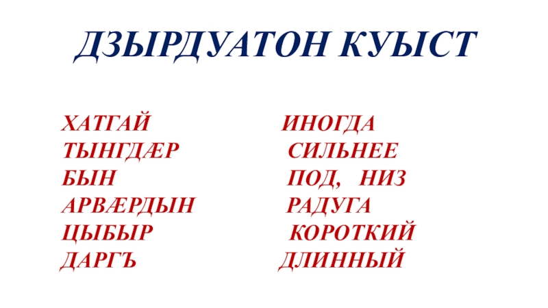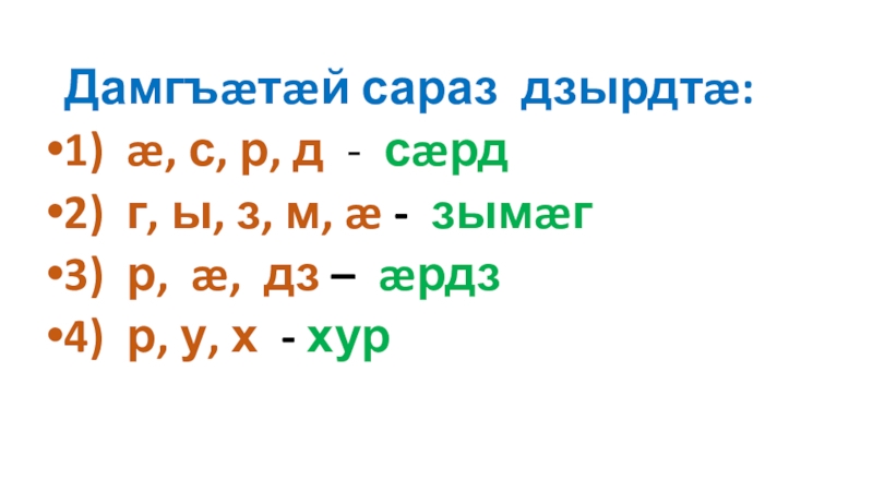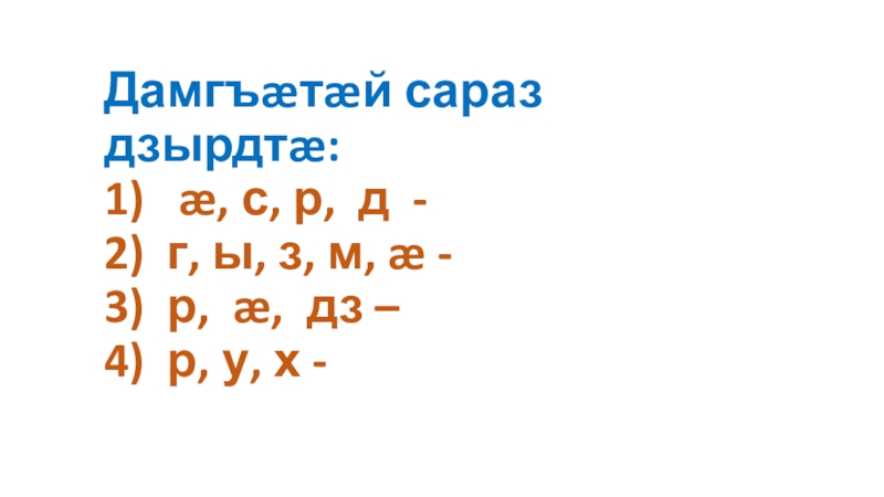 Слайд 17 Дамгъæтæй сараз дзырдтæ: