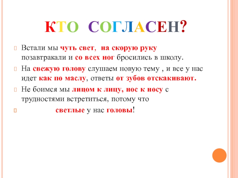 На седьмом небе от счастья; без сучка без задоринки; собираться с мыслями; сгорать от стыда; ни свет, ни заря; считать ворон.