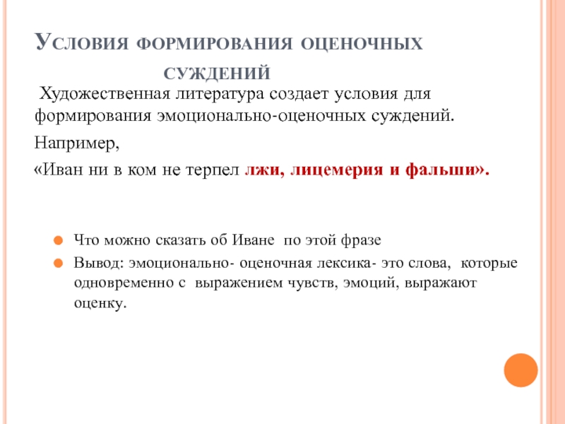Художественная литература создает условия для формирования эмоционально-оценочных суждений.