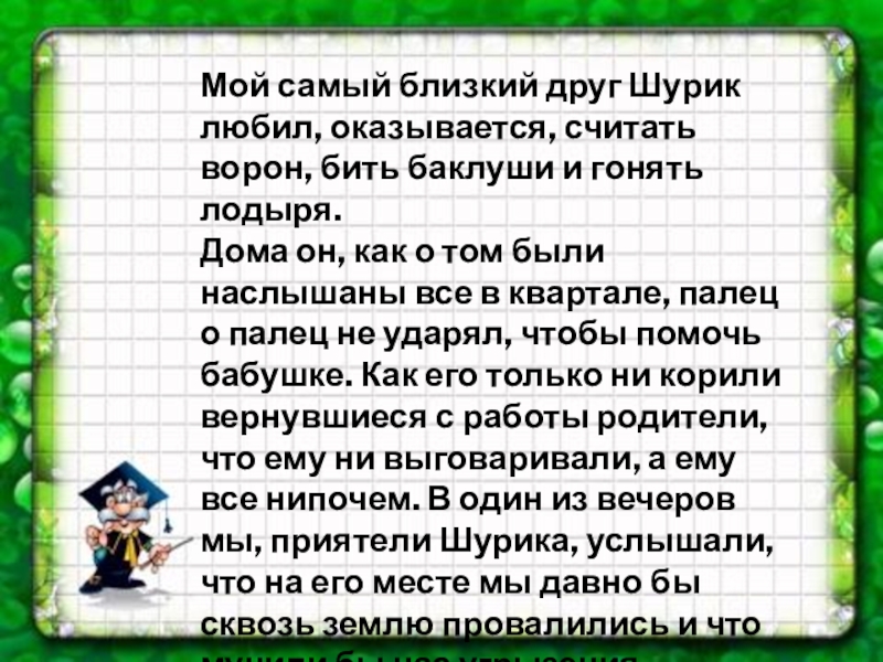 Слайд 9Мой самый близкий друг Шурик любил, оказывается, считать ворон, бить баклуши
