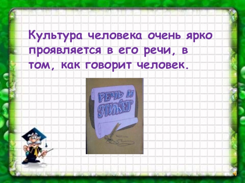 Слайд 4Культура человека очень ярко проявляется в его речи, в том, как