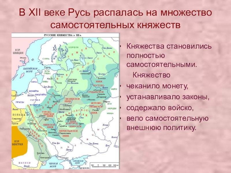 В XII веке Русь распалась на множество самостоятельных княжеств