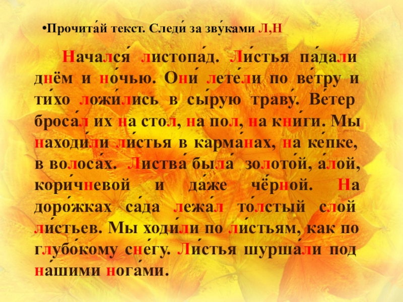 Прочита́й текст. Следи́ за зву́ками Л,Н