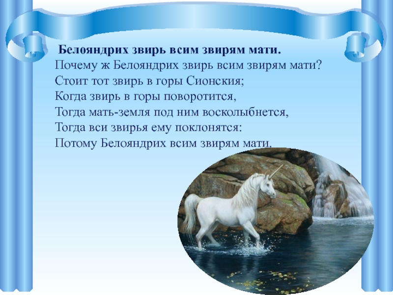 Слайд 22 Белояндрих звирь всим звирям мати.