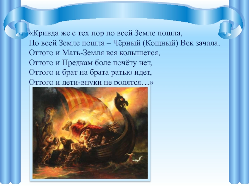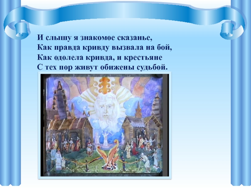 Слайд 29«Кривда же с тех пор по всей Земле пошла,