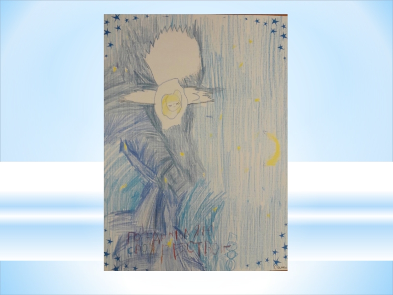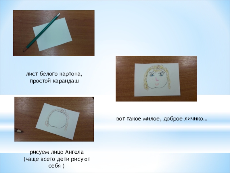лист белого картона,простой карандашрисуем лицо Ангела(чаще всего дети рисуют себя )вот такое милое, доброе личико…