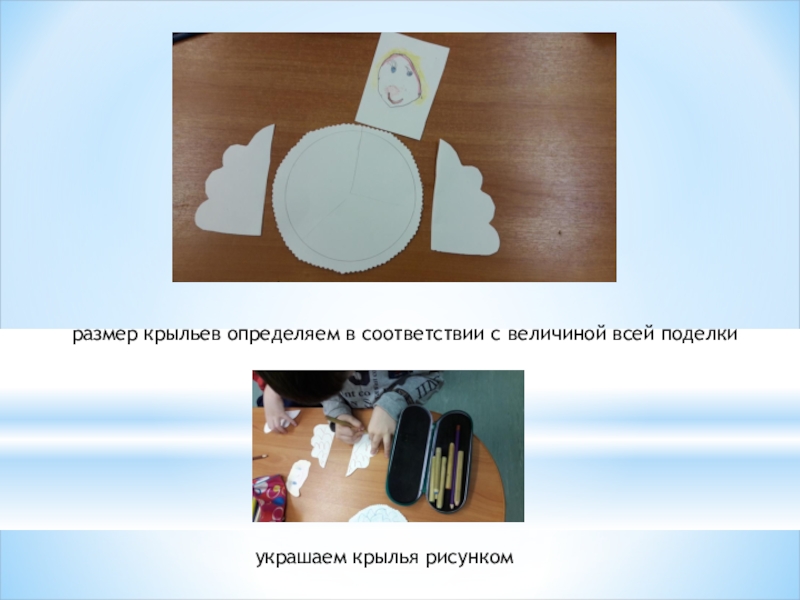 Слайд 4размер крыльев определяем в соответствии с величиной всей поделки