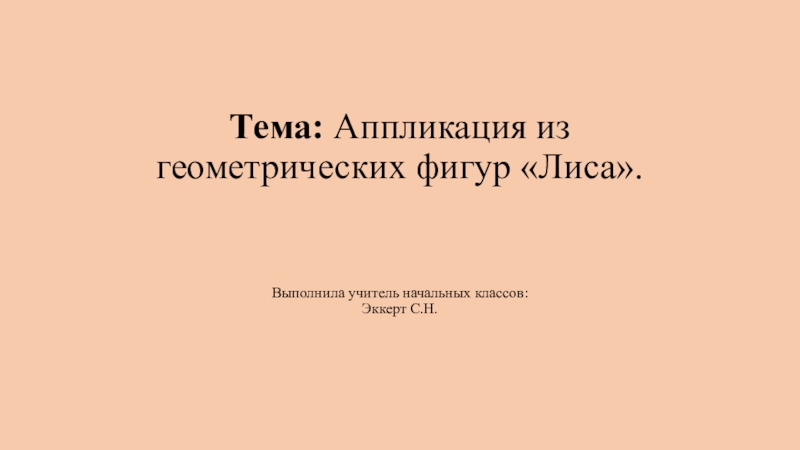 Слайд 1Тема: Аппликация из геометрических фигур «Лиса». Выполнила учитель начальных классов: Эккерт С.Н.