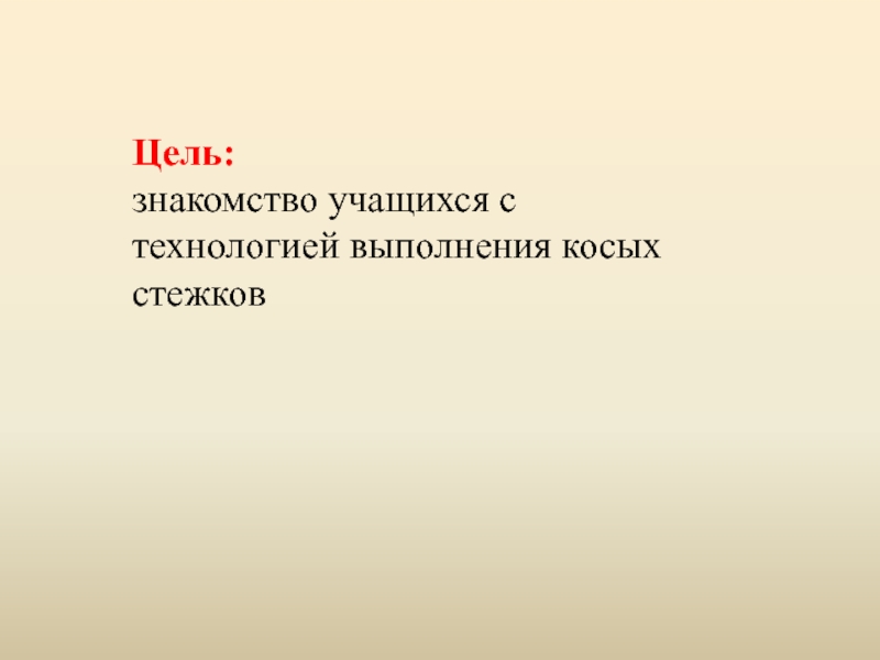 Цель: знакомство учащихся с технологией выполнения косых стежков