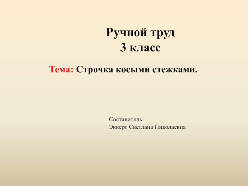 Тема: Строчка косыми стежками.Ручной труд3 классСоставитель:Эккерт Светлана Николаевна