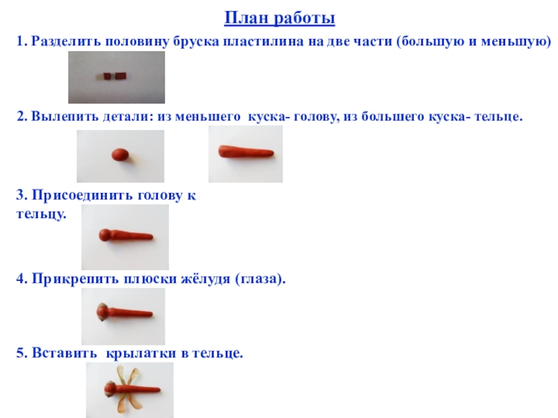 2. Вылепить детали: из меньшего куска- голову, из большего куска- тельце.