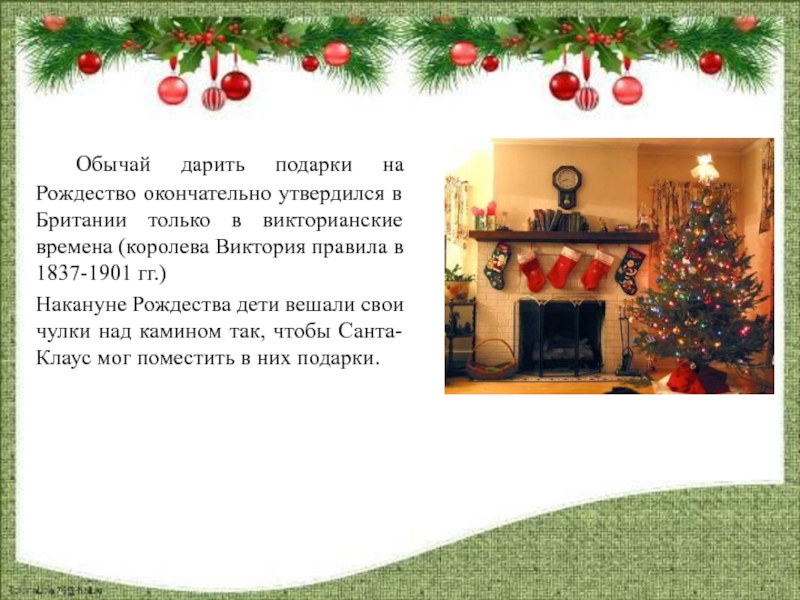 Слайд 8 Обычай дарить подарки на Рождество окончательно утвердился в Британии только в
