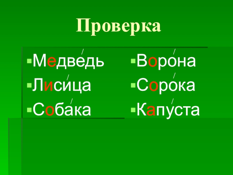 ПроверкаМедведьЛисицаСобакаВоронаСорокаКапуста
