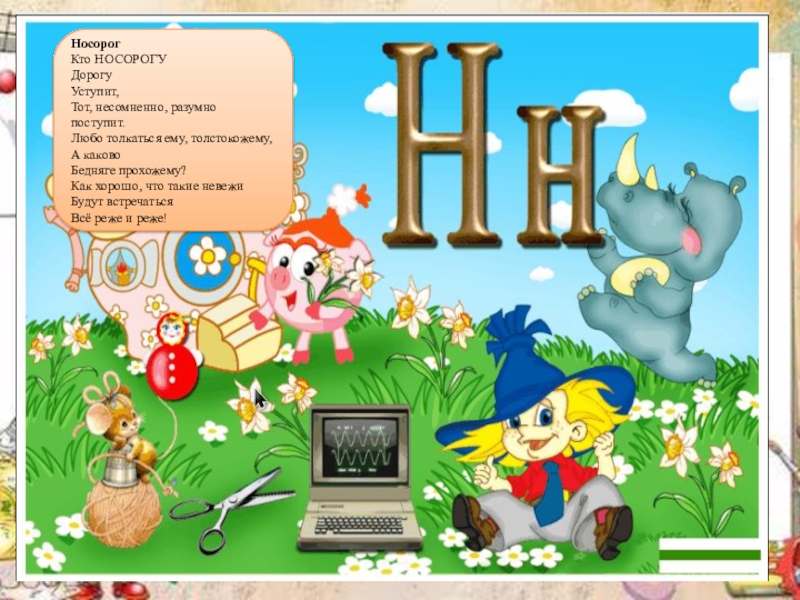 Кто НОСОРОГУ Дорогу Уступит, Тот, несомненно, разумно поступит. Любо толкаться ему, толстокожему, А каково Бедняге прохожему? Как хорошо,