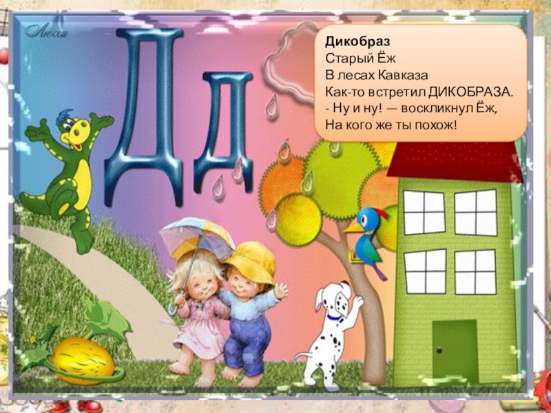 ДикобразСтарый Ёж В лесах Кавказа Как-то встретил ДИКОБРАЗА. - Ну и ну! — воскликнул Ёж, На кого
