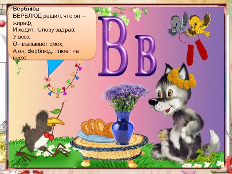 ВерблюдВЕРБЛЮД решил, что он — жираф, И ходит, голову задрав, У всех Он вызывает смех, А он,