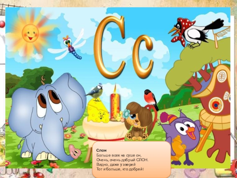 Больше всех на суше он, Очень, очень добрый СЛОН. Видно, даже у зверей Тот