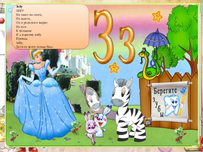ЗебуЗЕБУ Не знает ни снега, Ни вьюги, Он и родился и вырос На юге. К пальмам И