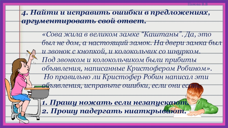 4. Найти и исправить ошибки в предложениях, аргументировать свой ответ.