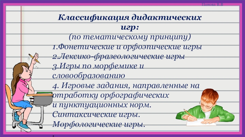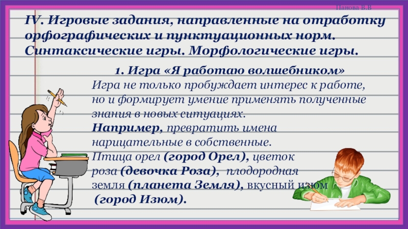 4. Игровые задания, направленные на отработку орфографических и пунктуационных норм. Синтаксические игры. Морфологические игры.