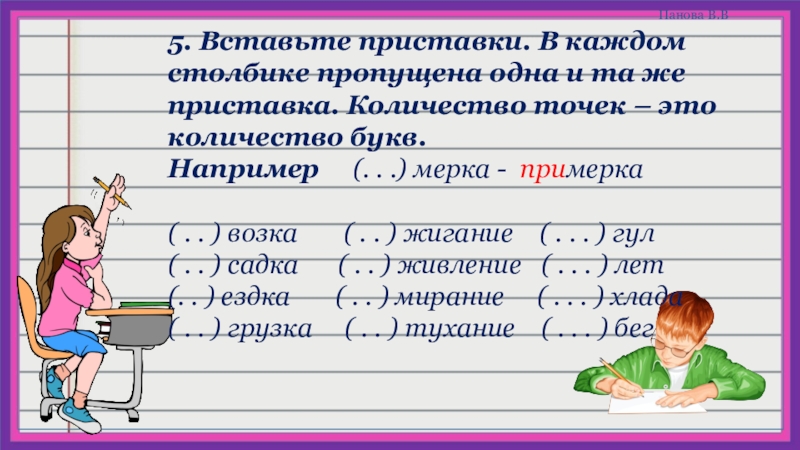 Слайд 335. Вставьте приставки. В каждом столбике пропущена одна и та же