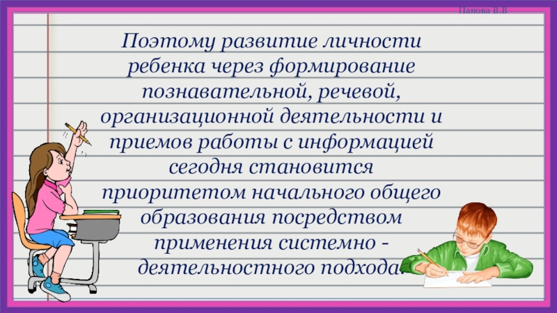 Слайд 5Поэтому развитие личности ребенка через формирование познавательной, речевой, организационной деятельности и