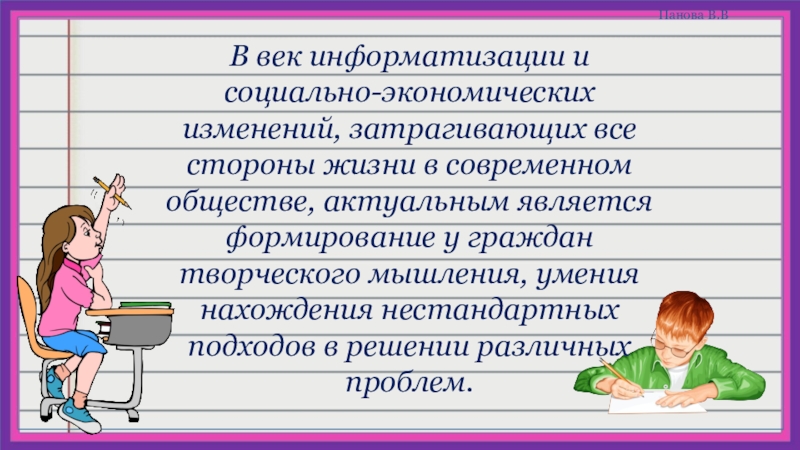 современном обществе, актуальным является формирование у граждан творческого мышления, умения нахождения нестандартных подходов в решении различных проблем.