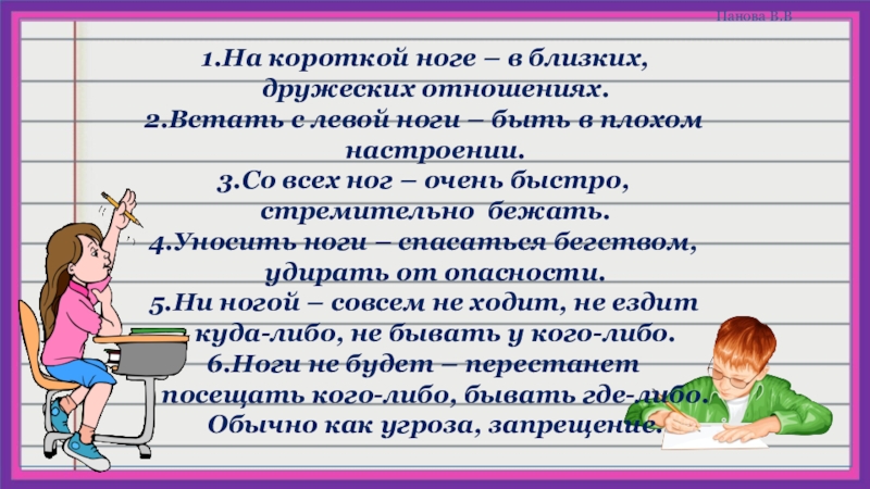 Сколько фразеологизмов со словом нога вы найдёте в данном
