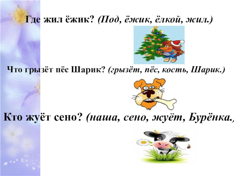 Кто жуёт сено? (наша, сено, жуёт, Бурёнка.)