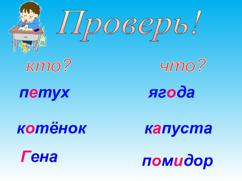 Тема: "Слова, отвечающие на вопросы кто? что?"