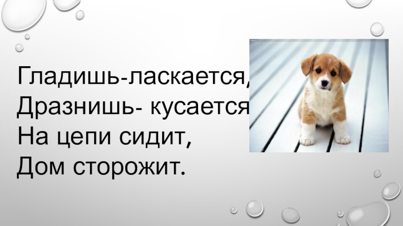 Гладишь-ласкается,Дразнишь- кусается.На цепи сидит,Дом сторожит.
