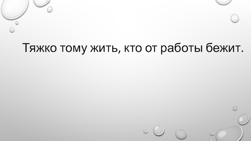 Слайд 1Тяжко тому жить, кто от работы бежит.