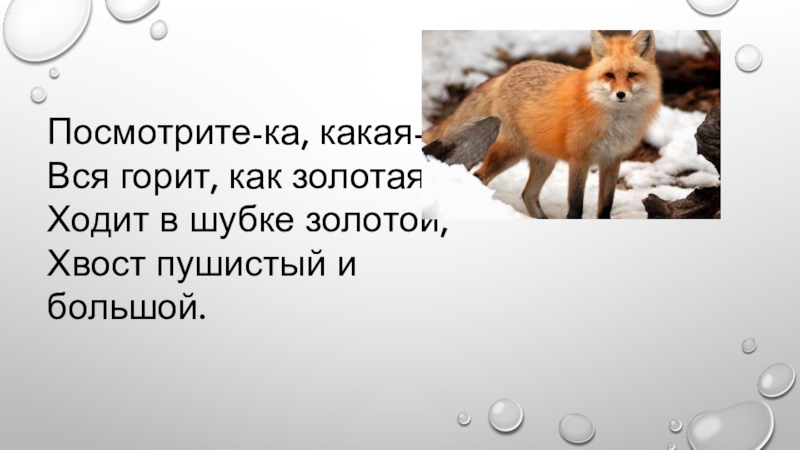Посмотрите-ка, какая-Вся горит, как золотая.Ходит в шубке золотой,Хвост пушистый и большой.