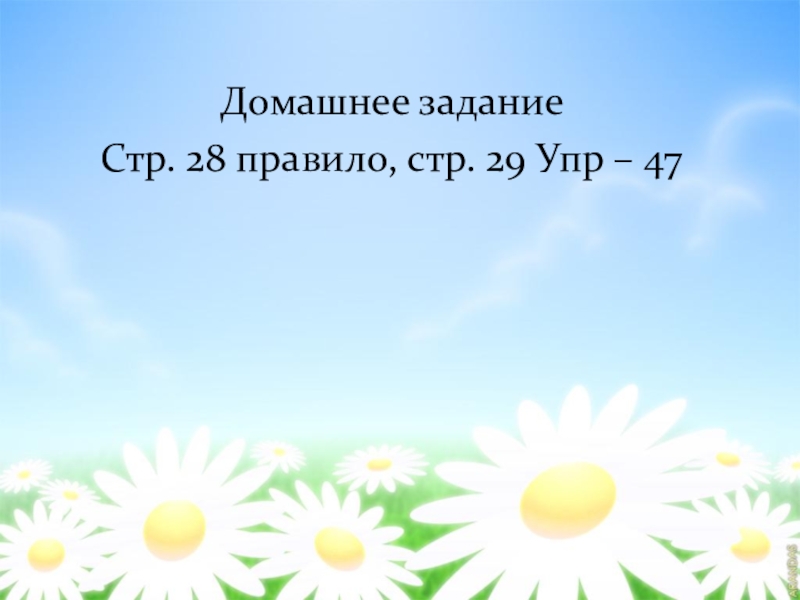 Домашнее заданиеСтр. 28 правило, стр. 29 Упр – 47