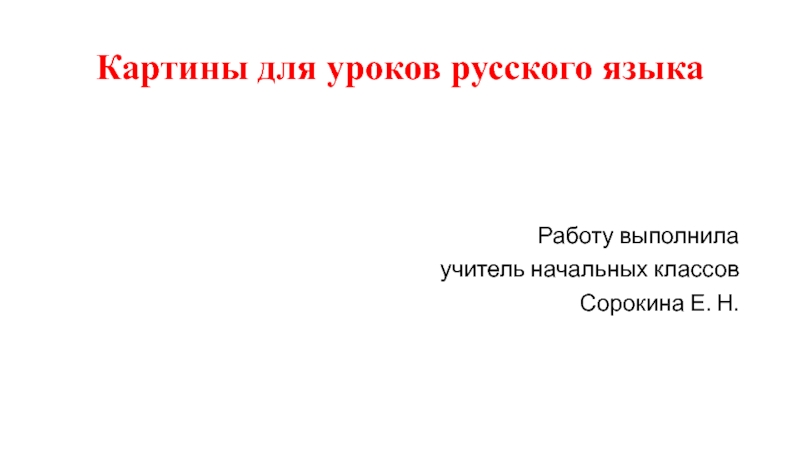 Картины для уроков русского языкаРаботу выполнилаучитель начальных классовСорокина Е. Н.