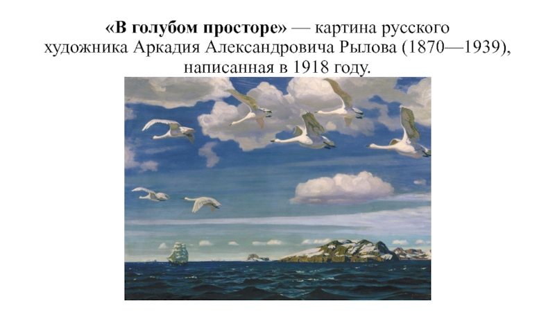 Слайд 11«В голубом просторе» — картина русского художника Аркадия Александровича Рылова (1870—1939), написанная в 1918