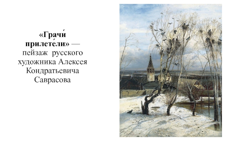 Слайд 9«Грачи́ прилете́ли» — пейзаж  русского художника Алексея Кондратьевича Саврасова