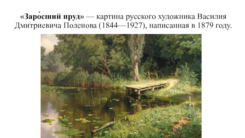 Слайд 5«Заро́сший пруд» — картина русского художника Василия Дмитриевича Поленова (1844—1927), написанная в 1879 году.