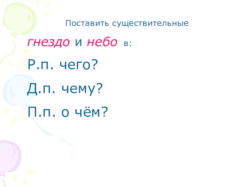 5. Какие окончания имеют имена существительные в Р.п., Д.п., П.П. ?