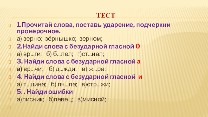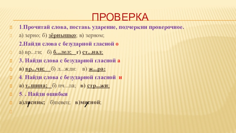 подбирать однокоренные слова или изменять форму слова с ударным проверяемым гласным