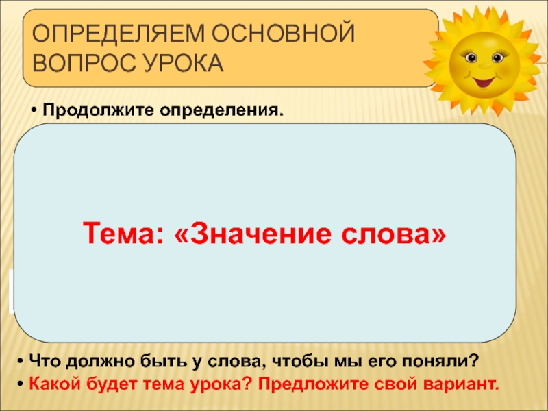 ОПРЕДЕЛЯЕМ ОСНОВНОЙ ВОПРОС УРОКА
