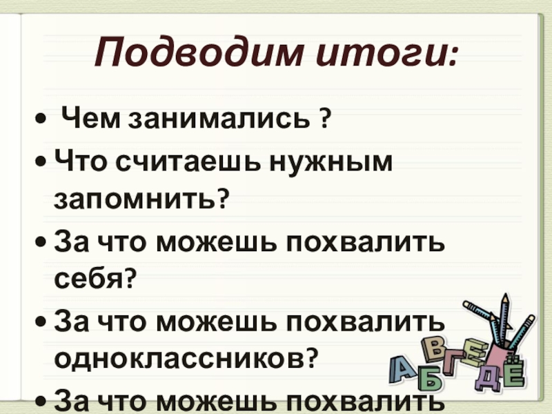 Это сайт презентаций, где можно хранить и обмениваться своими презентациями, докладами, проектами, шаблонами в формате PowerPoint с другими пользователями. Мы помогаем школьникам, студентам, учителям, преподавателям хранить и обмениваться учебными материалами.