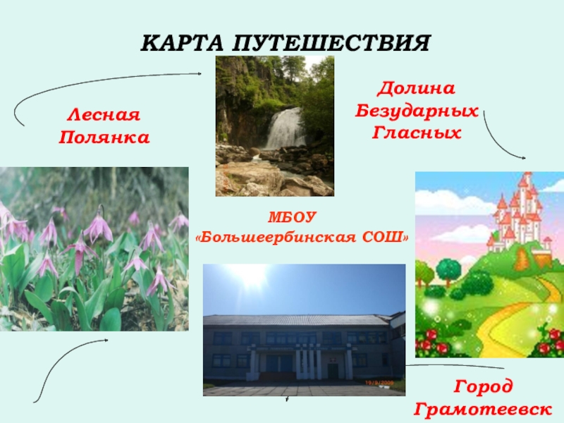 Лесная ПолянкаДолина БезударныхГласныхГород ГрамотеевскКАРТА ПУТЕШЕСТВИЯ       МБОУ «Большеербинская СОШ»