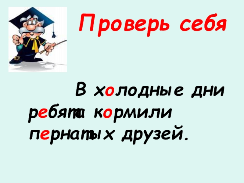 Проверь себя         В холодные дни ребята кормили пернатых друзей.